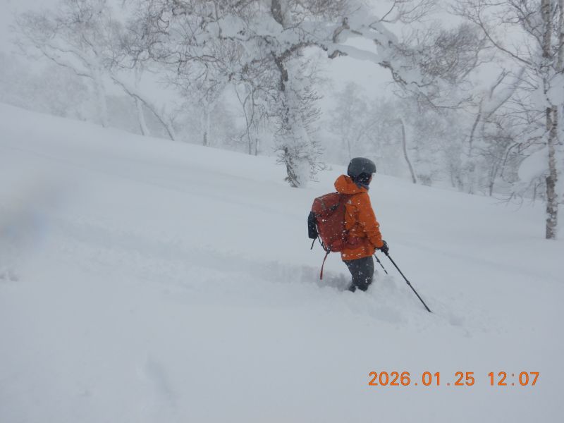 3名で小喜茂別岳に登ってきた。目的は、先日山スキー入門を受けたMがスキーで山頂を踏むこと。悪天の札幌を抜け中山峠へ向かう。何とほとんど雪が降った形跡がない。いつもの黒川出会いからスタート。トップで行動開始をしたものの、2パーティに追い越され、結果的にほとんどラッセル無しでピークに到着した。下りはパウダーを期待したが、期待に反して雪が重く(ラッセルをしていなかったので気が付かず)少々がっかり!転倒続きのMも徐々に滑りに慣れ、下部のブッシュ帯では転ばず。昨年山スキーを始めたNもスムーズにスキーを操作していた。戻った札幌は、降雪が続き、驚くほど酷い状況だった。