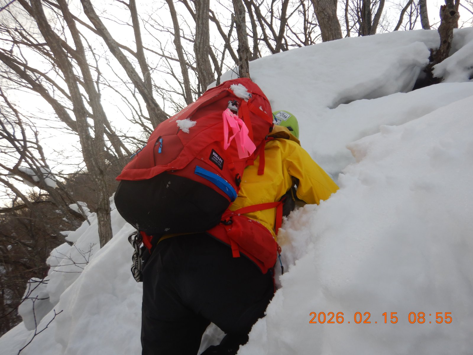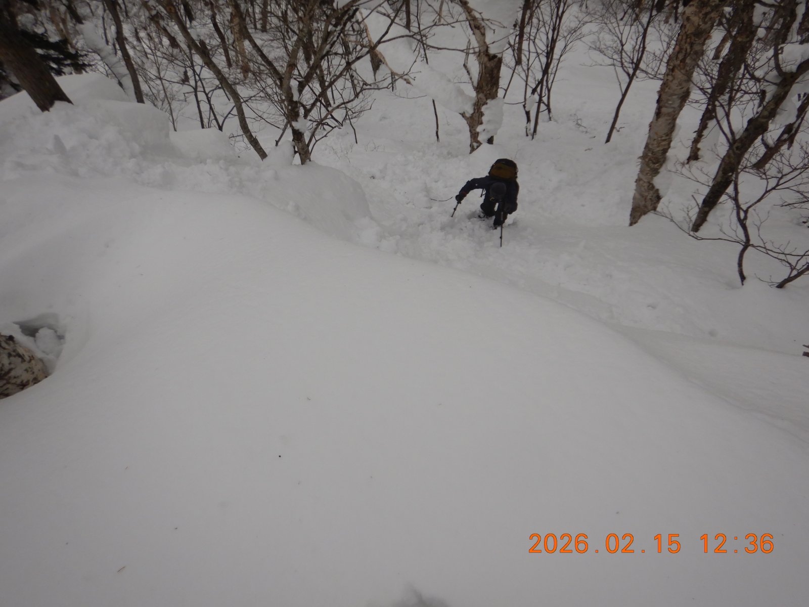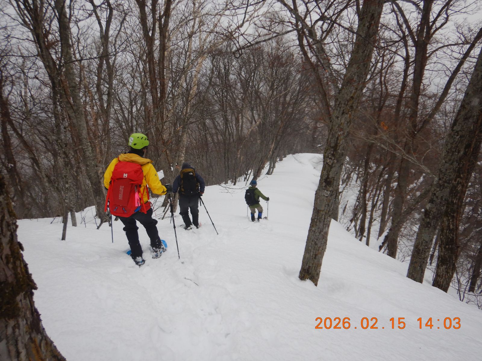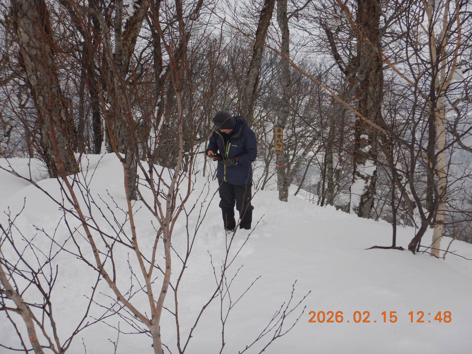 カミホロの予定だったが悪天予報のため、近郊のネオパラ山にスノーシューで行ってきた。スキーで一般的な西野浄水場からではなく、富丘からひたすら尾根を歩き、人気の手稲峰を経由して登った。気温が高く、ラッセルは楽だったが、スノーシューの底に雪が団子になり、とにかく滑る。計画書の予定時間を2時間弱オーバーしてネオパラに着く。帰りは楽をしようと手稲峰から北東に延びる尾根を下ったが、予想通り急で、おまけに滑るので尻滑りを交えての下山となった。ピーク周辺以外は鹿のトレースだらけ、あちこちで樹皮が無残にたべられている。今シーズン、鹿も食べるものがなく苦労しているようだ。