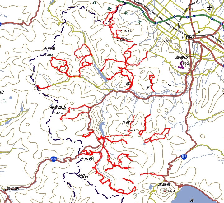 | 13 | 豊滝 滝ノ沢〜札幌岳〜豊滝コース登山道 | 2013.10.13 | 4名 | 藪漕ぎ1時間半 |
